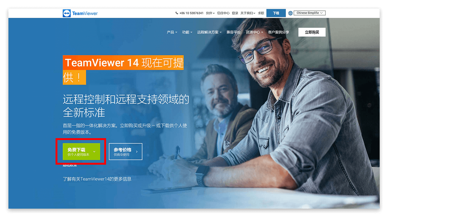进入 TeamViewer 官网,点击绿色按钮进行下载。